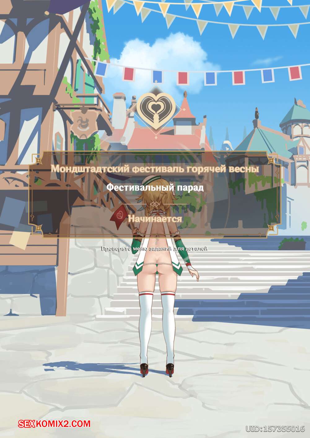 ΠΠΎΡΠ½ΠΎ ΠΊΠΎΠΌΠΈΠΊΡ Genshin Impact. ΠΠΎΠ½Π΄ΡΡΠ°Π΄ΡΡΠΊΠΈΠΉ ΡΠ΅ΡΡΠΈΠ²Π°Π»Ρ Π³ΠΎΡΡΡΠ΅ΠΉ Π²Π΅ΡΠ½Ρ ΠΠΎΡΡΡΠ°Ρ ΡΠΈΡΡΡΡΠ°Ρ Π±Π»ΠΎΠ½Π΄ΠΈΠ½ΠΊΠ° Π±ΡΠ»Π° ΠΎΡΠ΅Π½Ρ Π²ΠΎΠ·Π±ΡΠΆΠ΄Π΅Π½Π° ΠΈ ΡΠ΅ΡΠΈΠ»Π° ΠΏΠΎΠ²Π΅ΡΠ΅Π»ΠΈΡΡΡΡ ΡΠΎ ΡΠ²ΠΎΠΈΠΌ Π΄ΡΡΠΆΠΊΠΎΠΌ. ΠΠ½Π° ΡΠ°Π·Π΄Π΅Π»Π°ΡΡ ΠΏΠ΅ΡΠ΅Π΄ Π½ΠΈΠΌ ΠΈ ΡΡΠ°Π»Π° ΡΠΎΡΠ°ΡΡ Π΅Π³ΠΎ Π±ΠΎΠ»ΡΡΠΎΠΉ Ρ ΡΠΉ, ΠΏΠΎΡΠ»Π΅ ΡΠ΅Π³ΠΎ Π΄Π°Π»Π° Π΅ΠΌΡ ΡΠ΅Π±Ρ Π²ΡΠ΅Π±Π°ΡΡ.
