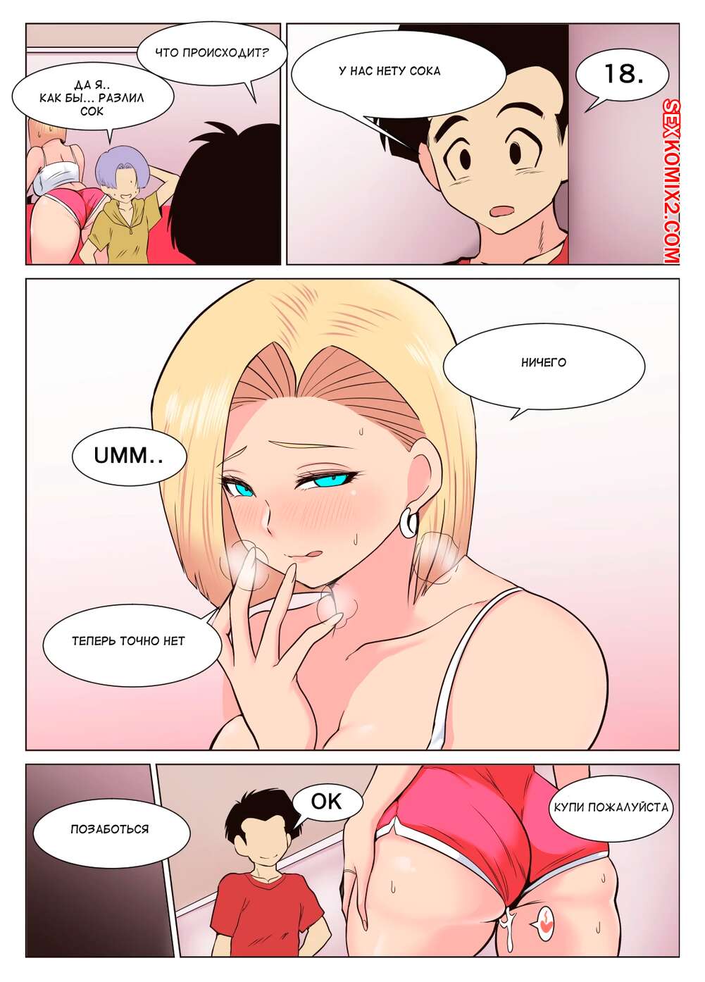 ΠΠΎΡΠ½ΠΎ ΠΊΠΎΠΌΠΈΠΊΡ Dragon Ball. Π’ΡΠ°Π½ΠΊΡ ΠΈ ΠΠΎΡΠ΅Π½. T and G. Donaora889. ΠΠ½Π΄ΡΠΎΠΈΠ΄ 18 ΠΏΡΠΈΡΠΌΠ°ΡΡΠΈΠ²Π°Π»Π° Π·Π° Π’ΡΠ°Π½ΠΊΡΠΎΠΌ ΠΈ ΠΠΎΡΠ΅Π½ΠΎΠΌ. ΠΠ°ΡΠ½ΠΈ ΡΠ΅ΡΠΈΠ»ΠΈ Π²ΠΎΡΠΏΠΎΠ»ΡΠ·ΠΎΠ²Π°ΡΡ ΡΠ΅Π»ΠΎΠΌ ΠΊΡΠ°ΡΠΎΡΠΊΠΈ ΠΈ Π΄Π°Π»ΠΈ Π΅ΠΉ ΠΎΡΡΠΎΡΠ°ΡΡ ΡΠ²ΠΎΠΈ Π±ΠΎΠ»ΡΡΠΈΠ΅ Ρ ΡΠΈ, ΠΏΠΎΡΠ»Π΅ ΡΠ΅Π³ΠΎ Ρ ΠΎΡΠΎΡΠ΅Π½ΡΠΊΠΎ Π΅Π΅ Π²ΡΠ΅Π±Π°Π»ΠΈ Π²ΠΎ Π²ΡΠ΅ Π΄ΡΡΠΎΡΠΊΠΈ.