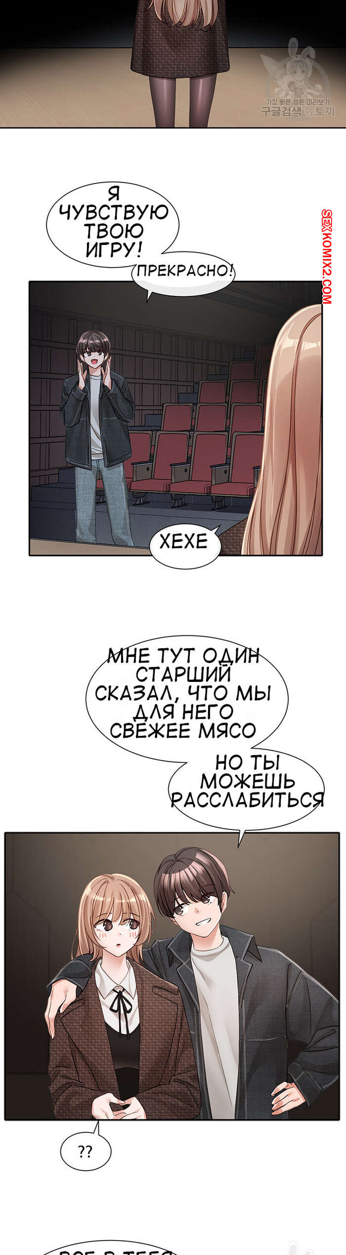 ΠΠΎΡΠ½ΠΎ ΠΊΠΎΠΌΠΈΠΊΡ Π’Π΅Π°ΡΡΠ°Π»ΡΠ½ΡΠΉ ΠΊΠ»ΡΠ±. Π§Π°ΡΡΠΈ 135 ΠΈ 136. Circles. Theater cociety Π‘Π΅ΠΊΡΡΠ°Π»ΡΠ½Π°Ρ Π±ΡΡΠ½Π΅ΡΠΊΠ° ΠΏΡΠΈΠ³Π»Π°ΡΠΈΠ»Π° ΠΏΠ°ΡΠ½Ρ ΠΊ ΡΠ΅Π±Π΅ Π΄ΠΎΠΌΠΎΠΉ. ΠΠ½ΠΈ ΡΡΠ°Π»ΠΈ ΡΡΡΠ°ΡΡΠ½ΠΎ ΡΠ΅Π»ΠΎΠ²Π°ΡΡΡΡ ΠΈ Π»Π°ΡΠΊΠ°ΡΡ Π΄ΡΡΠ³ Π΄ΡΡΠ³Π°, ΠΏΠΎΡΠ»Π΅ ΡΠ΅Π³ΠΎ Π΄Π΅Π²ΡΡΠΊΠ° ΡΠ°Π·Π΄Π²ΠΈΠ½ΡΠ»Π° Π½ΠΎΠΆΠΊΠΈ ΠΈ Π΄Π°Π»Π° ΠΏΠ°ΡΠ½Ρ ΡΠ΅Π±Ρ Ρ ΠΎΡΠΎΡΠ΅Π½ΡΠΊΠΎ Π²ΡΠ΅Π±Π°ΡΡ.