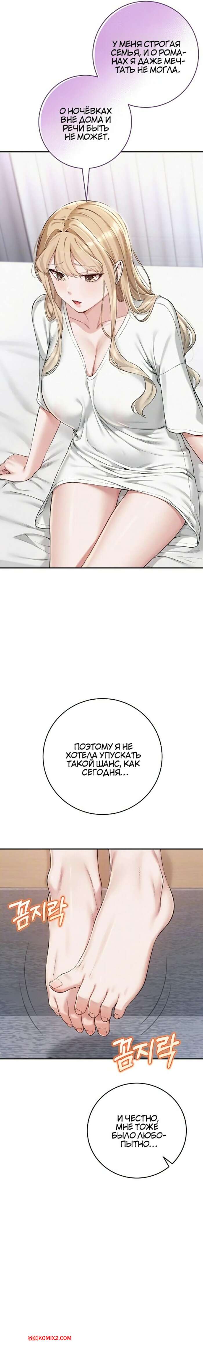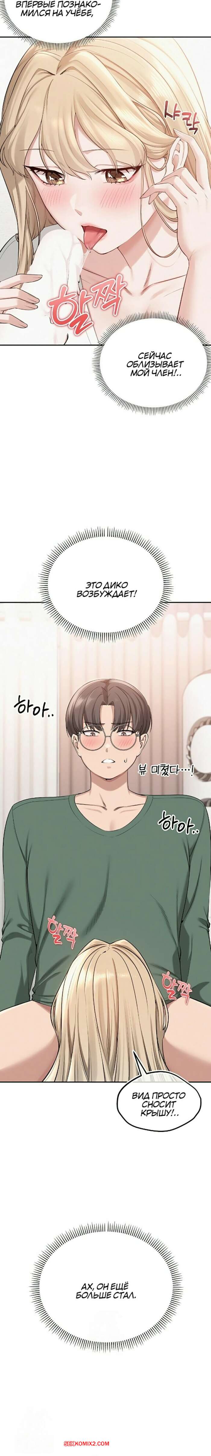 ΠΠΎΡΠ½ΠΎ ΠΊΠΎΠΌΠΈΠΊΡ ΠΠΎΡ ΠΎΡΠ»ΠΈΠ²ΡΠ΅ Π΄Π΅Π²ΡΡΠΊΠΈ ΡΠ½ΠΈΠ²Π΅ΡΡΠΈΡΠ΅ΡΠ°. Π§Π°ΡΡΡ 4 ΠΈ 5 ΠΈ 6 ΠΠΎΡΡΡΠ°Ρ Π±Π»ΠΎΠ½Π΄ΠΈΠ½ΠΊΠ° Π·Π°ΠΈΠ³ΡΡΠ²Π°Π΅Ρ ΡΠΎ ΡΠ²ΠΎΠΈΠΌ Π΄ΡΡΠΆΠΊΠΎΠΌ, ΠΆΠ΅Π»Π°Ρ ΠΏΠΎΠ²Π΅ΡΠ΅Π»ΠΈΡΡΡΡ. ΠΠ½Π° ΡΡΠ°Π΄ΠΈΠ»Π° Π΅Π³ΠΎ Π½Π° ΠΊΡΠΎΠ²Π°ΡΡ ΠΈ ΠΎΡΡΠΎΡΠ°Π»Π° Π±ΠΎΠ»ΡΡΠΎΠΉ ΡΠ»Π΅Π½ ΠΏΠ°ΡΠ½Ρ, ΠΏΠΎΡΠ»Π΅ ΡΠ΅Π³ΠΎ ΡΠ°Π·Π΄Π²ΠΈΠ½ΡΠ»Π° Π½ΠΎΠΆΠΊΠΈ ΠΈ Π΄Π°Π»Π° ΡΠ΅Π±Ρ Π²ΡΠ΅Π±Π°ΡΡ.