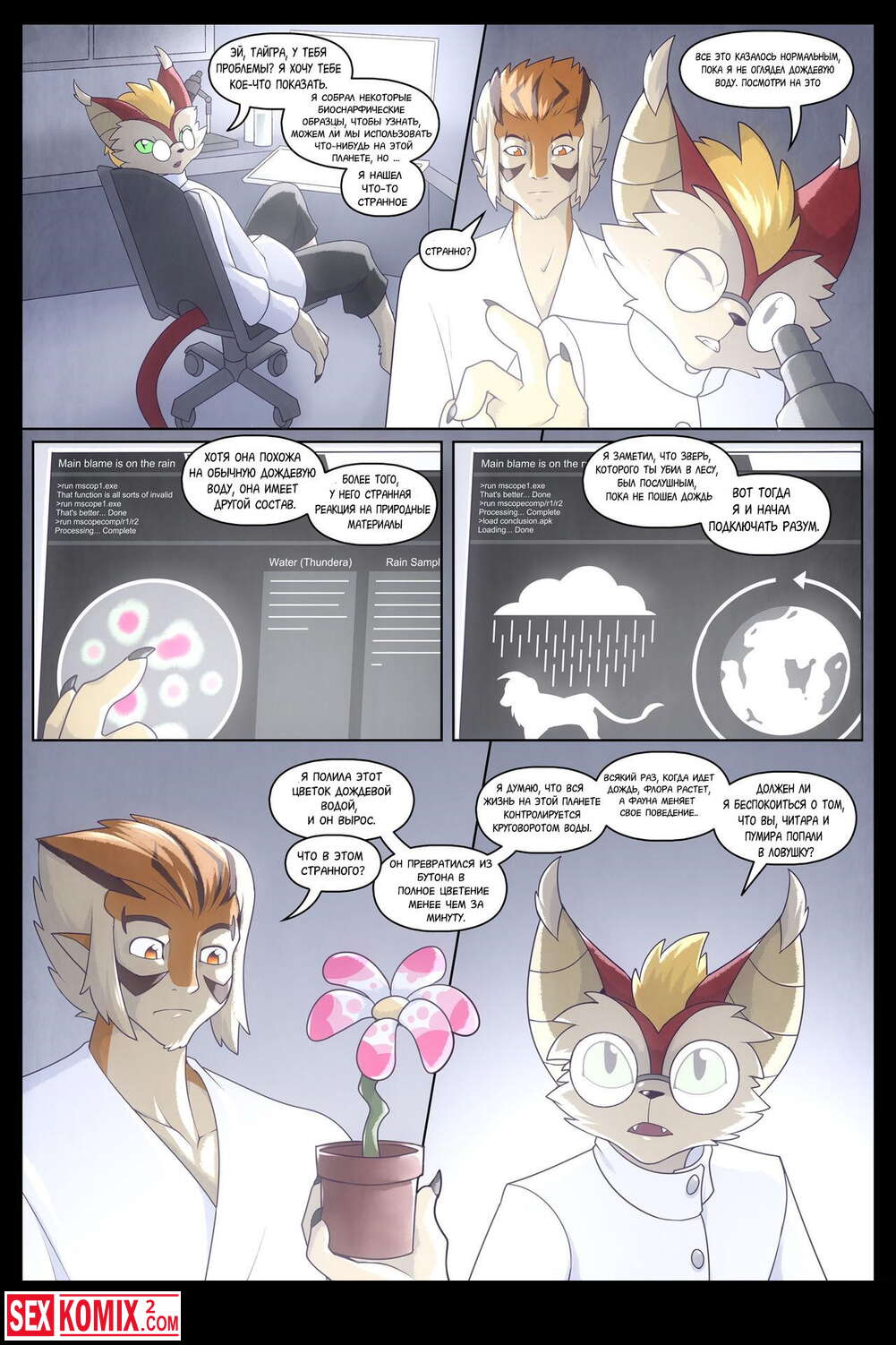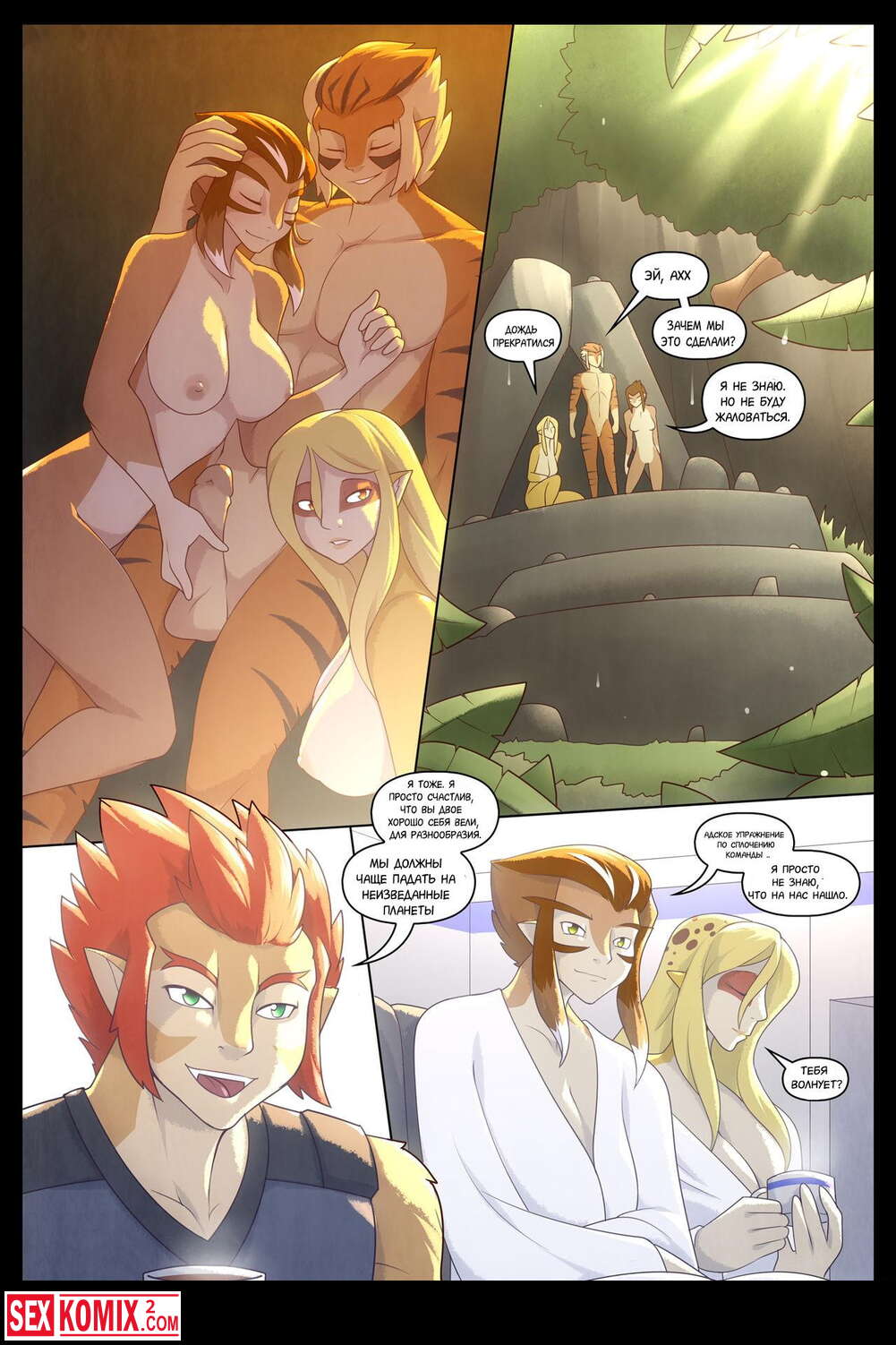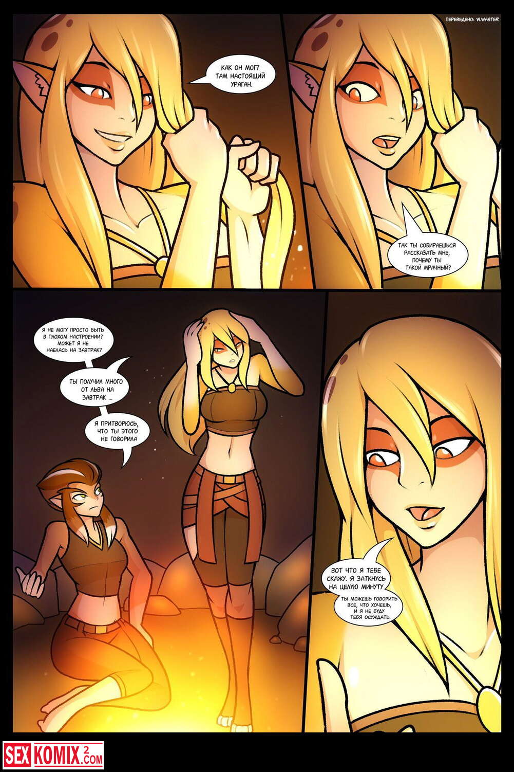 Порно комикс Фурри Ливень. Девушка сильно переживала из-за неудачного боя, но её союзник смог успокоить красотку и приласкал её ночью у костра.